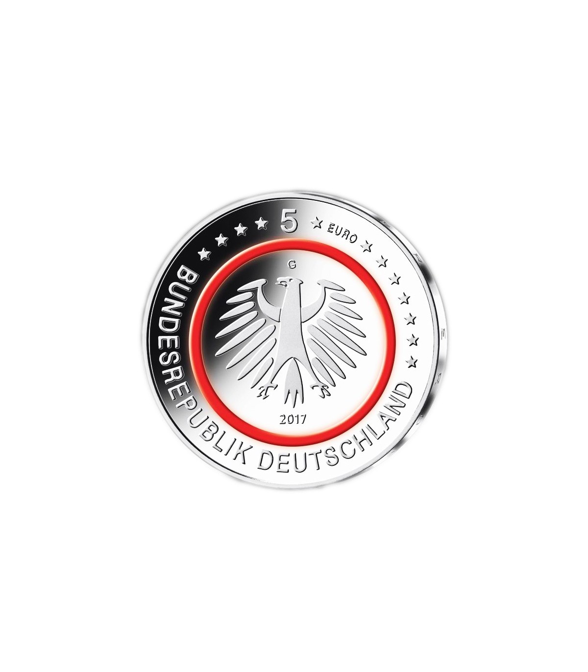 5 Euro Deutschland 2017 zum Thema "Tropische Zone" mit einem Ring aus Polymer in roter Farbe.