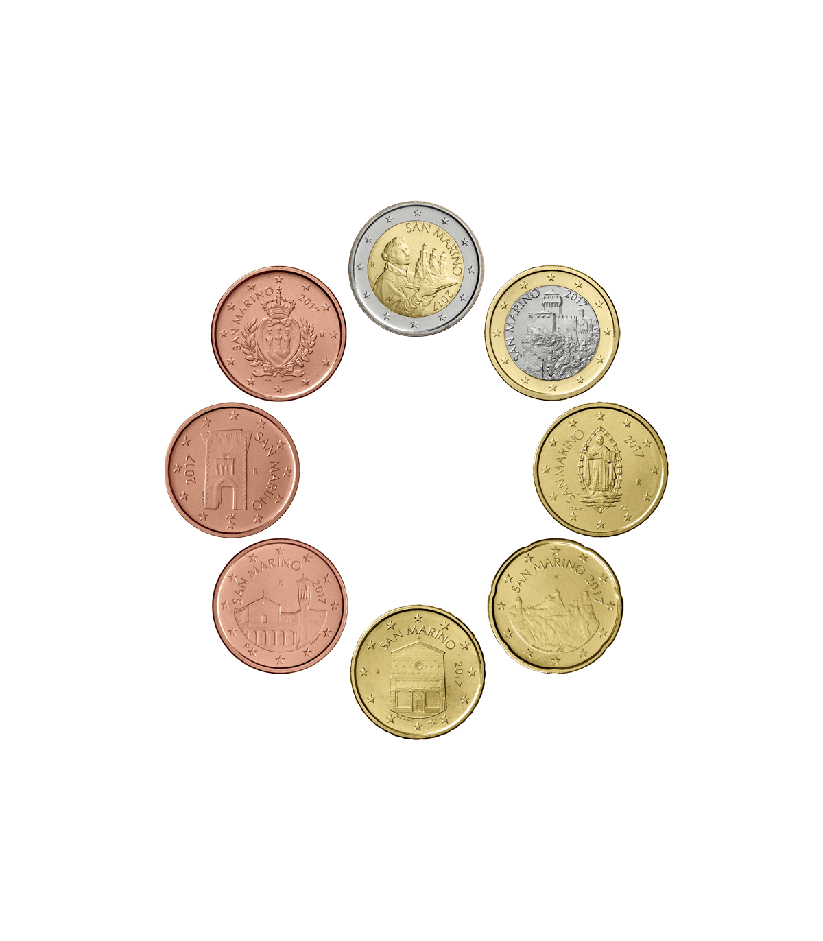 Serie San Marino 2017 mit den Münzen von 1 Cent bis 2 Euro aus diesem Jahr, d. h. 3,88 Euro.