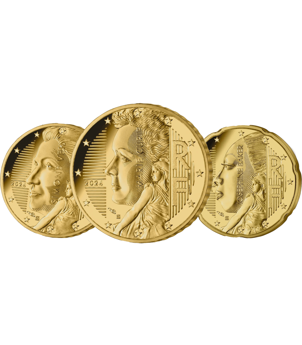 Bei den 10-Cent-Münzen ist es Simone Veil, die im Mittelpunkt steht. Ihr ernstes und ruhiges Gesicht würdigt ihr unvergängliches Vermächtnis als Stütze der europäischen politischen Sphäre und als unerschütterliche Verfechterin der Frauenrechte.