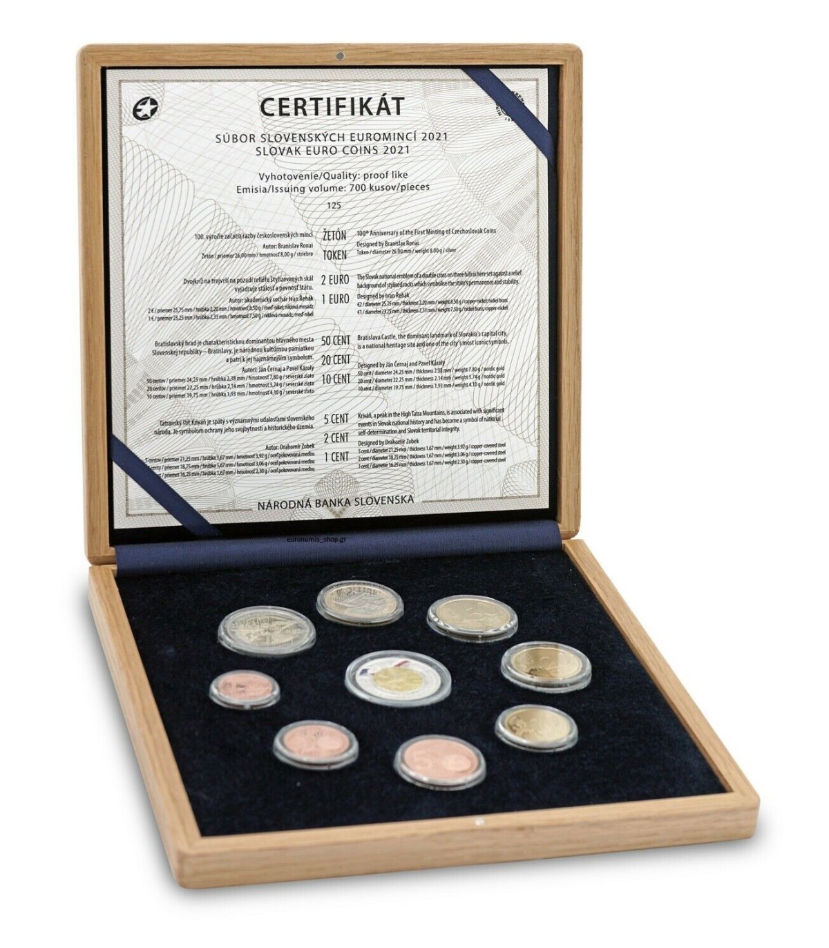 Geschenkset Belle Epreuve Slovaquie zum Thema 100 Jahre erste tschechoslowakische Münzen der Kremnica MintEinschließlich der Münzen mit dem Jahrgang 2021 sowie einer Silbermedaille