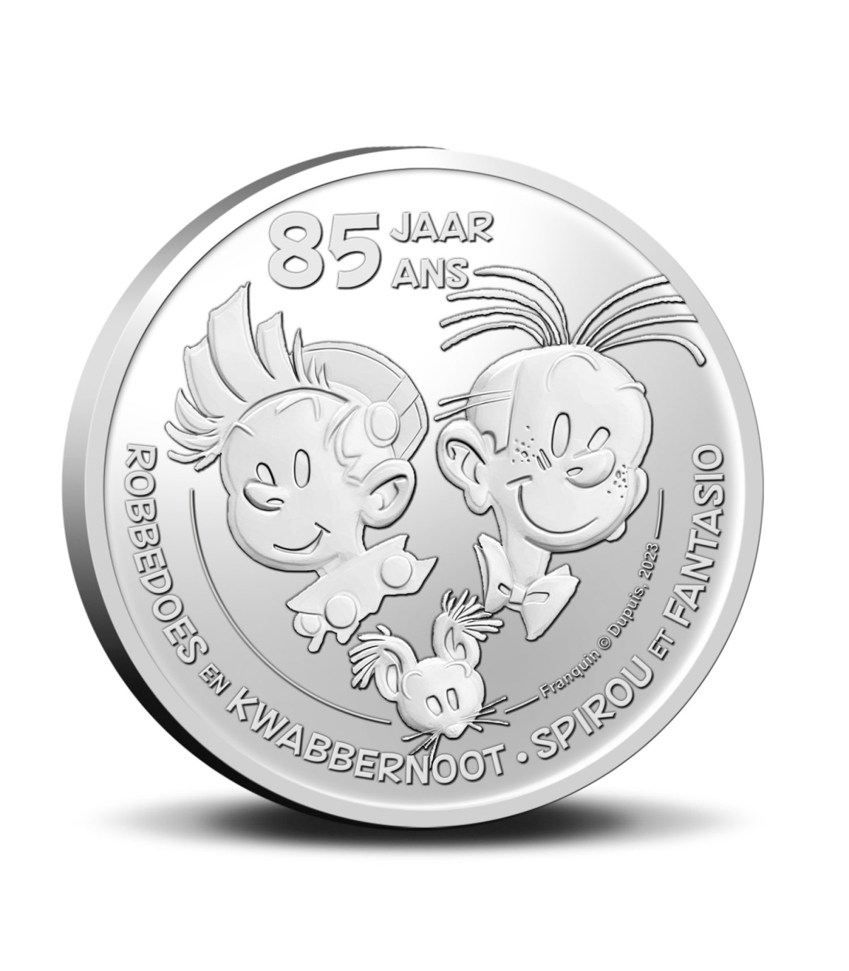 Die Königliche Belgische Münze hat Spirou und Fantasio mit einer 5-Euro-Gedenkmünze geehrt. Diese Münze gibt es in zwei Varianten: eine mit Relief und eine in Farbe. Sie ist eine schöne Art, den Geburtstag dieser emblematischen Figuren zu feiern.