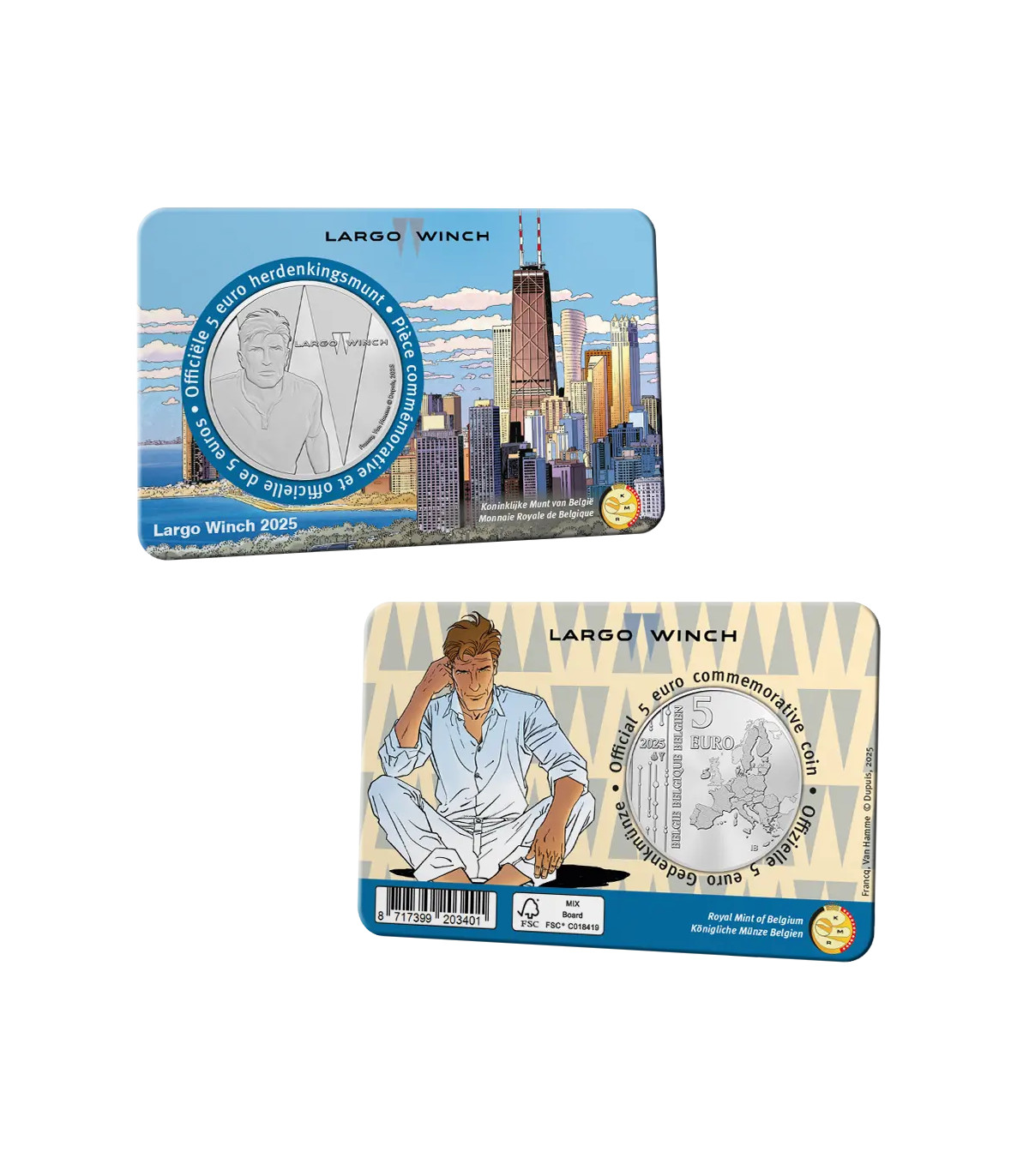 Anlässlich des 35-jährigen Jubiläums des Comics wird Largo Winch mit einer 5-Euro-Gedenkmünze gefeiert, die in zwei exklusiven Versionen erhältlich ist: