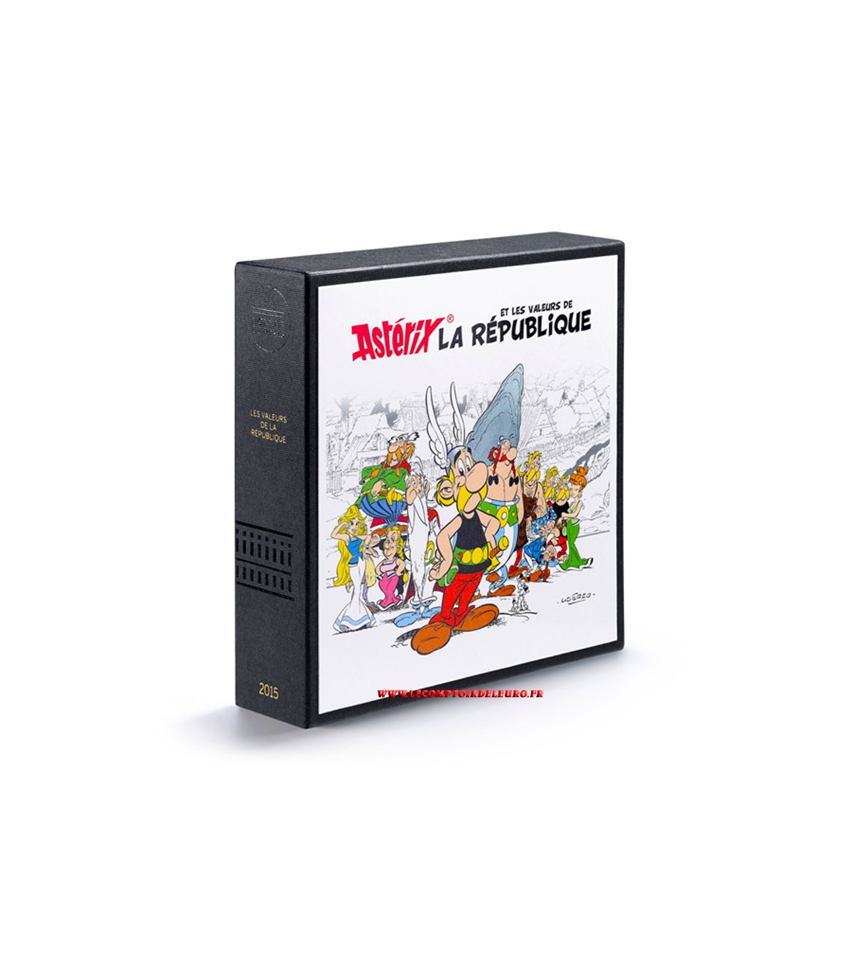 Dieses Set enthält die ersten 12 Asterix-Silbermünzen zu 10 Euro sowie die erste Asterix-Silbermünze zu 50 Euro, die 2015 von der Monnaie de Paris im Rahmen ihres Währungsprogramms "Valeurs de la République" geprägt wurden.