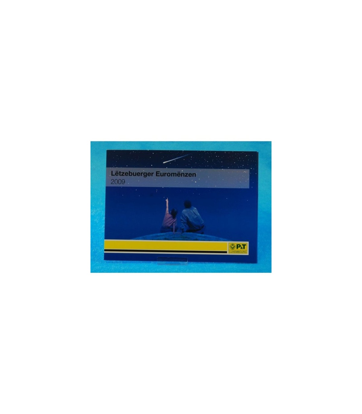 Serie von 8 münzen in einer Universal-Glanzkassette BU, die die Werte vereint von 1 Cent bis 2 Euro Luxemburg 2009 + Briefmarken.