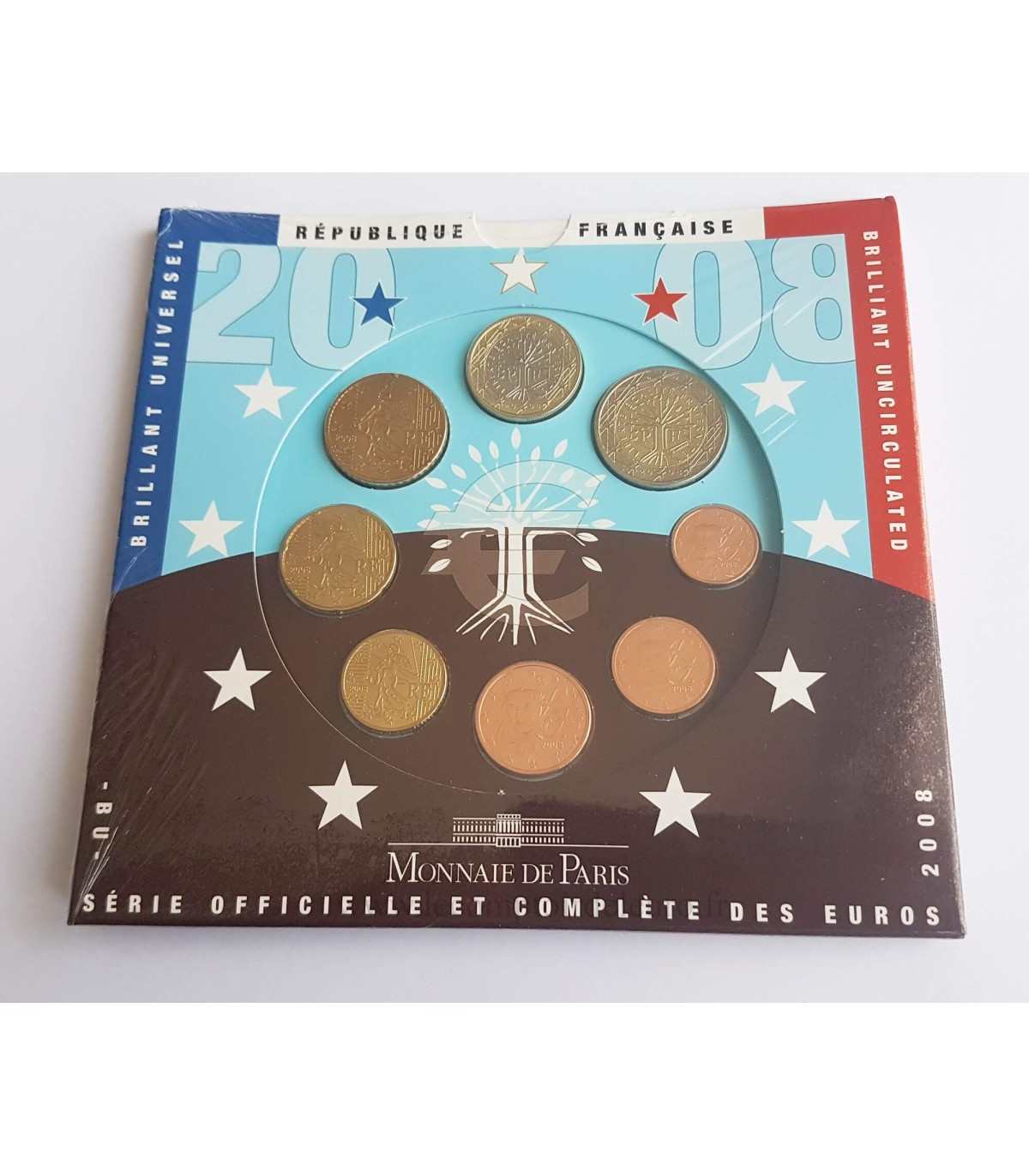 Serie von 8 Münzen in einer BU Universal-Glanzkassette, die die Werte von 1 Cent bis 2 Euro Frankreich mit dem Jahrgang 2008vereint.