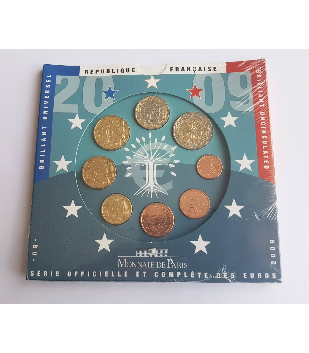 BU-Set Jahr 2009 mit einer Serie von 8 Münzen von 1 Cent bis 2 Euro Frankreich.