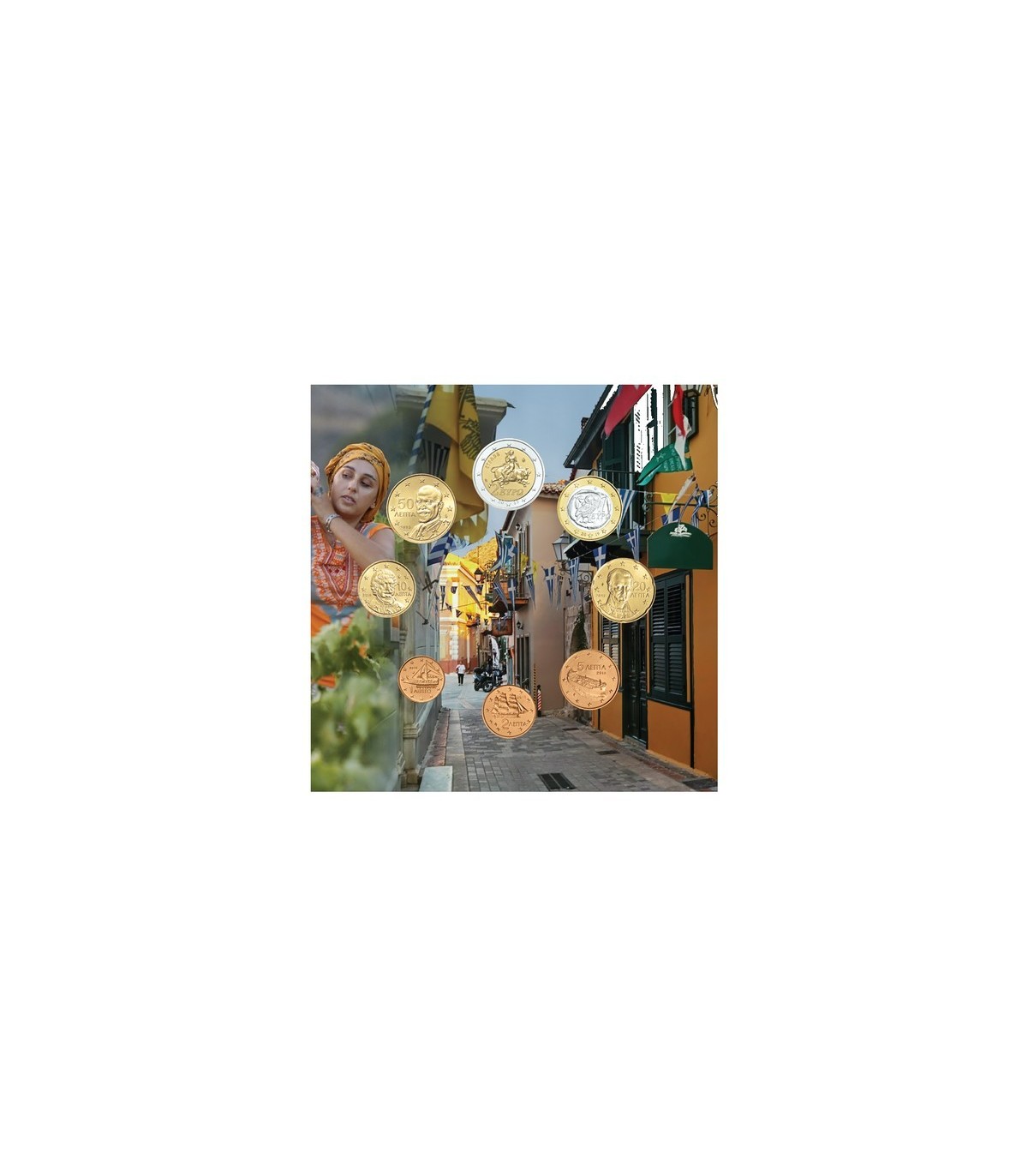 Grece-Serie in der offiziellen BU 2023-Box mit den 8 Münzen 1c bis 2€ normal mit dem Jahrgang 2023.