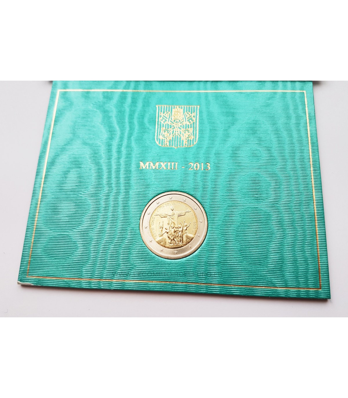 2 €-Gedenkmünze in der offiziellen Vatikan-Box 2013 zum Gedenken an den 28. Weltjugendtag 2013, der in der brasilianischen Stadt Rio de Janeiro stattfindet (23. bis 28. Juli 2013).
