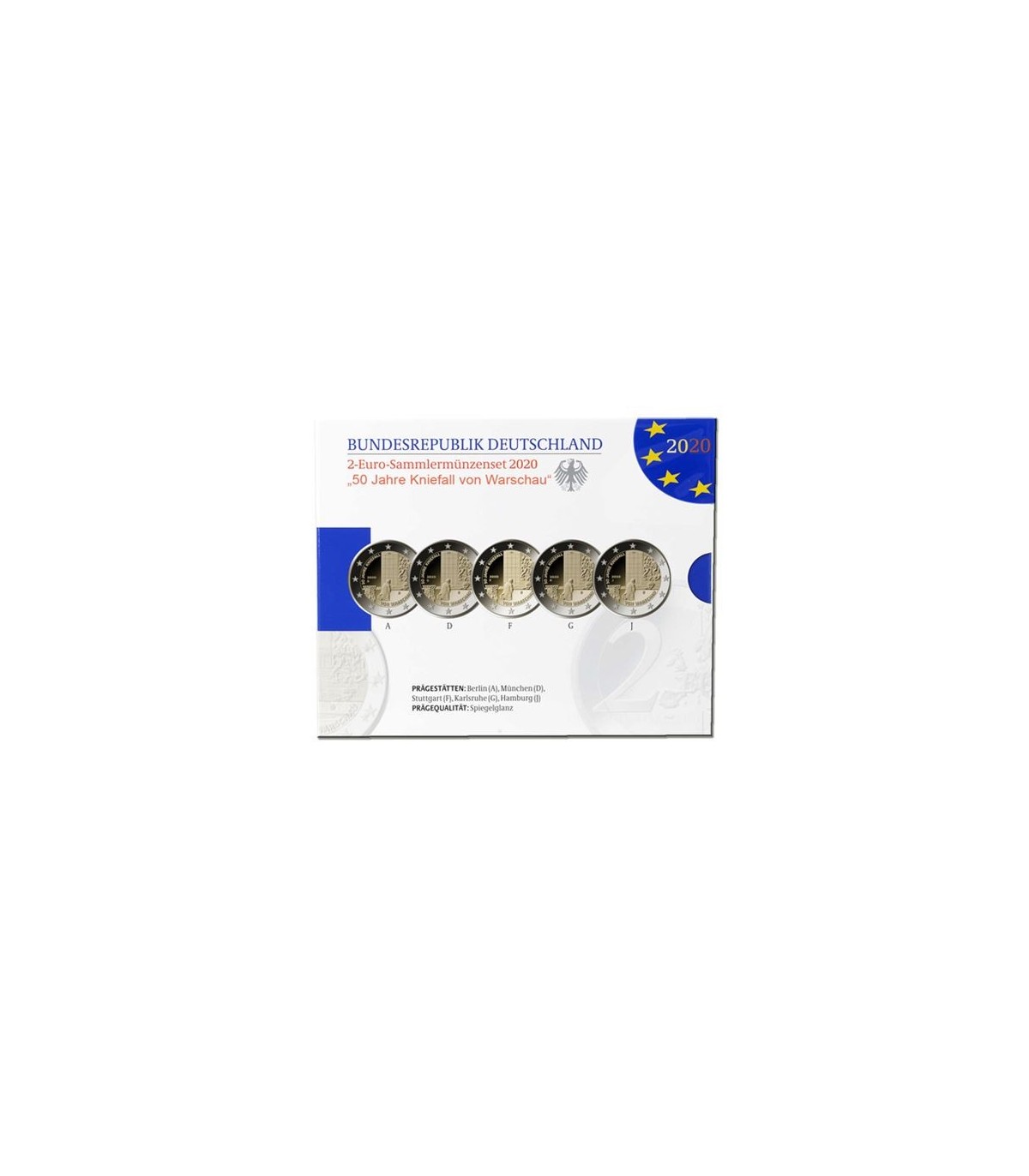 Lot of 5 commemorative €2 coins Germany 2020 workshop a,d,f,g,j on the theme of the 50th anniversary of Willy Brandt's Genuflection in Warsaw in BE quality