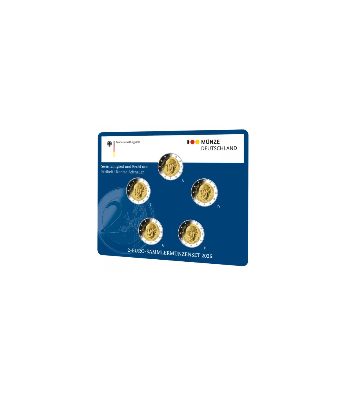 5 x 2 € Commemorative BU Germany 2026 in honor of the first Chancellor of the Federal Republic of Germany, Konrad Adenauer.