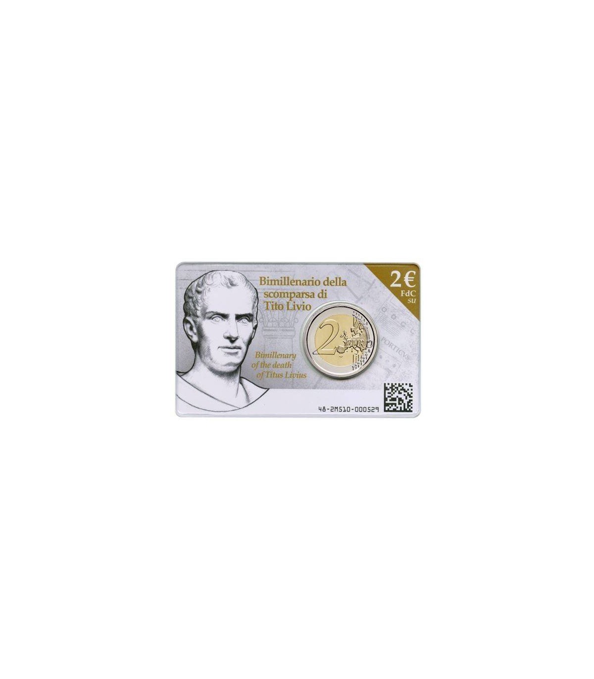 Coincard in BU quality of 2 Euro commemorative Italy 2017 on the 2000 th anniversary of the death of the famous historian Titus Live -59 BC - 17 AD .