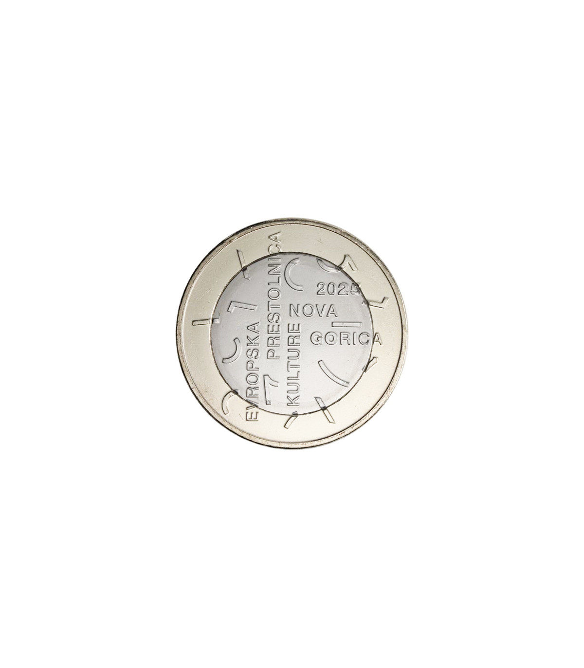 The coin design features graphic elements inspired by European art and culture, reflecting Nova Gorica's plural identity. Located at the crossroads of the Latin, Slavic and Germanic worlds, the city is a symbol of cooperation and creativity. Festivals, theater, music and visual arts enliven its urban space every year, reinforcing its role as a cultural bridge at the heart of Europe.