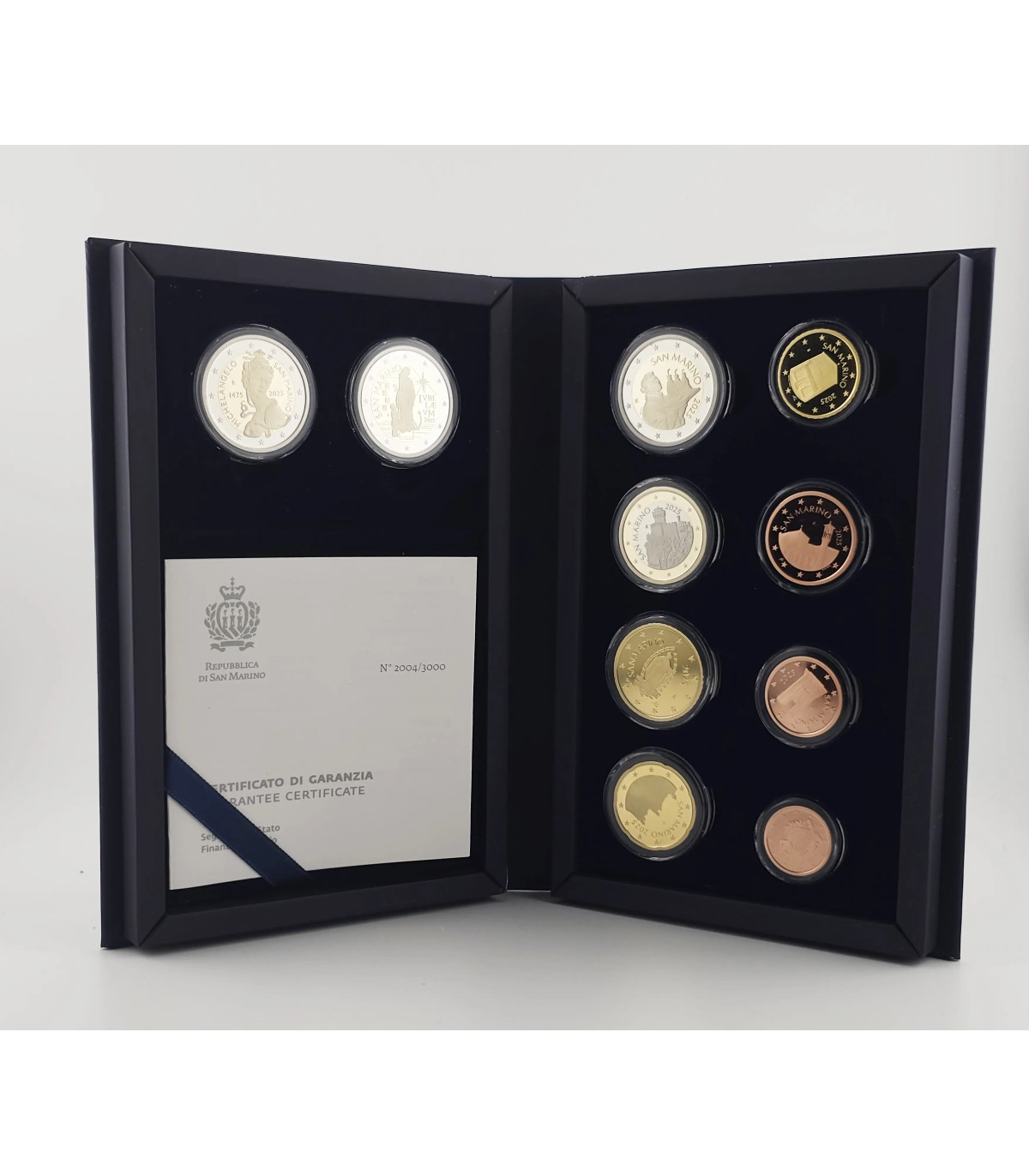 Attractive 2025 proof box containing the 2 commemorative coins and the 8 coins from 1 cent to 2 euros, i.e. a total of 10 coins.