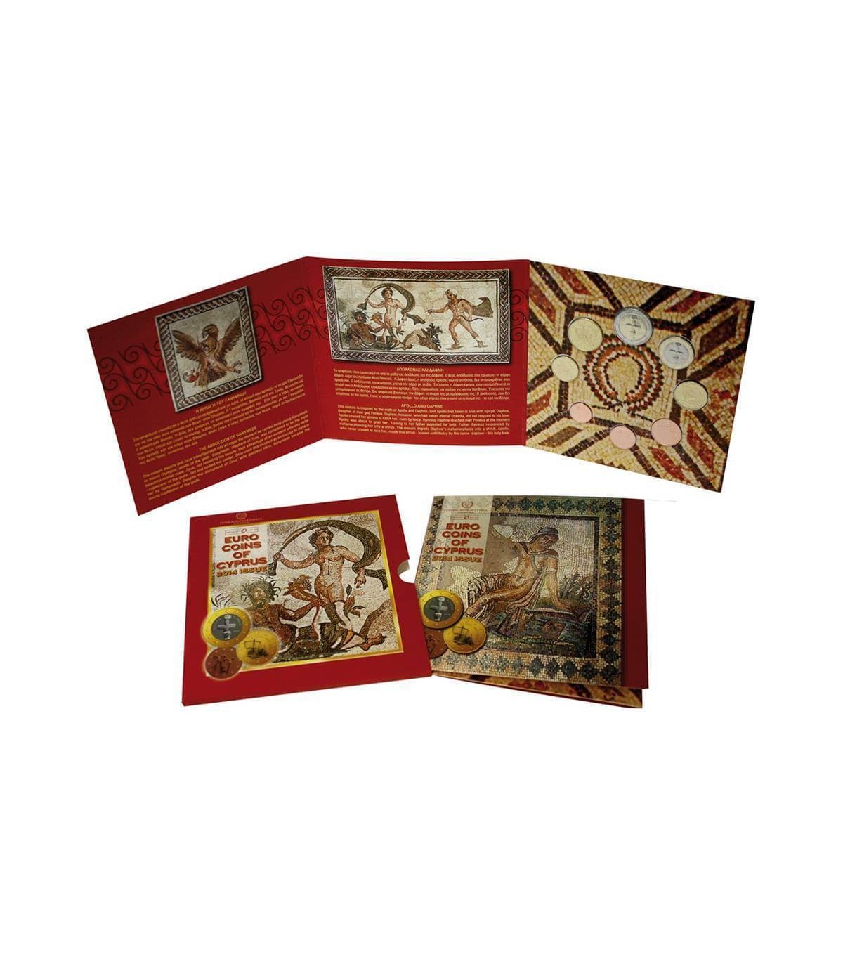 Description: boxed set of 1 cent to 2 euro coins for 2014 on the theme of the ancient mosaics of the house of Dionysus, the god of vines, wine and its excesses, a Unesco World Heritage site.