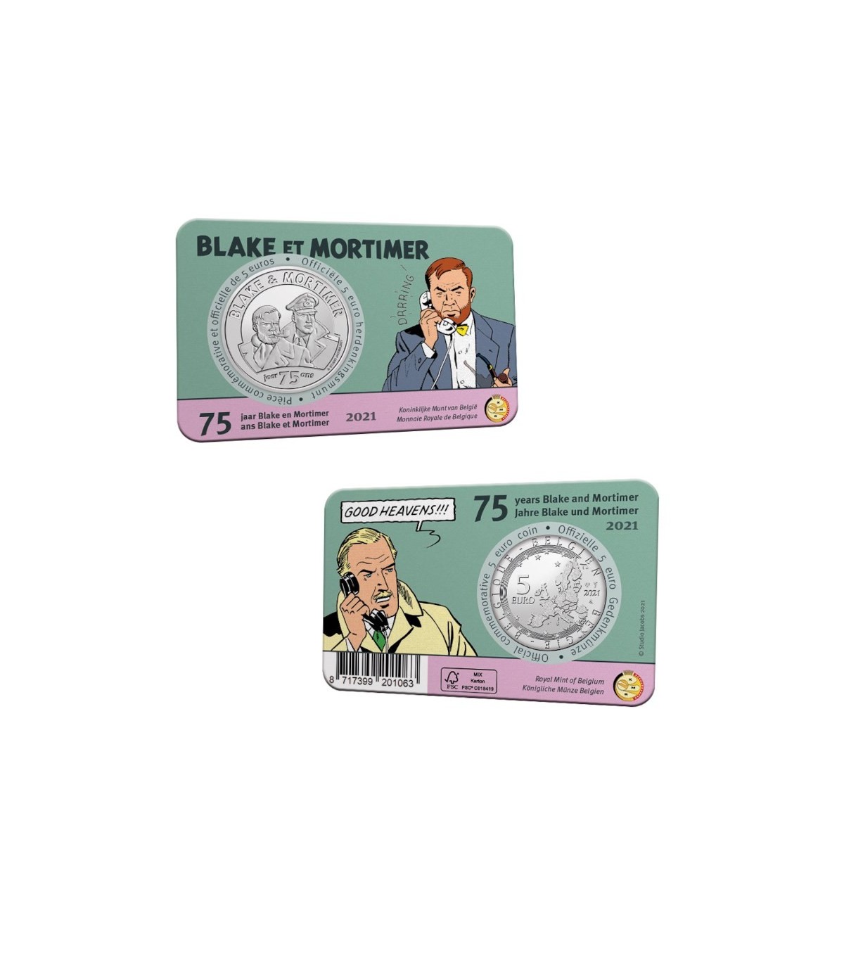Coincard 5 Euro Belgique 2021 in embossed version on the theme of the 75th anniversary of the creation of the Blake and Mortimer characters