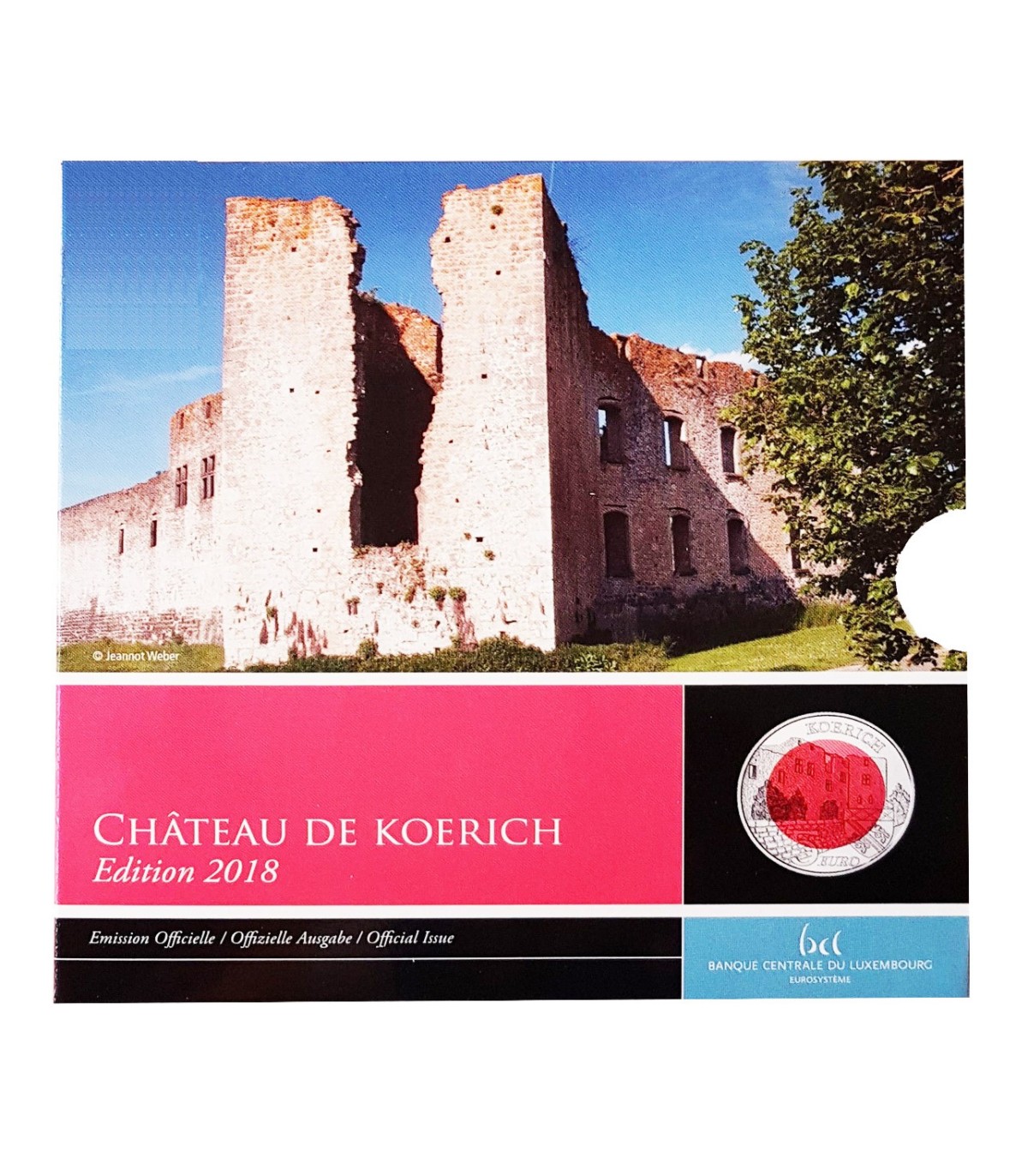 5 Euro Commemorative Luxembourg 2018 coin in nobium on the theme of Chateau de Koerich.