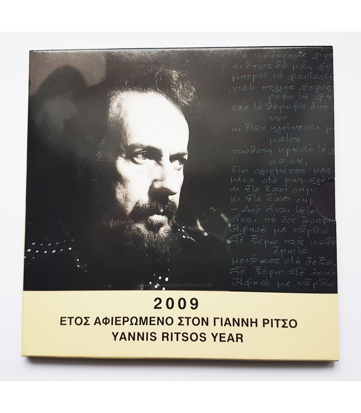 2009 BU boxed set including a series of 8 coins ranging from 1 cent to 2 Euro Greece + 1 10 Euro coin on the theme of Yiannis Ritsos.