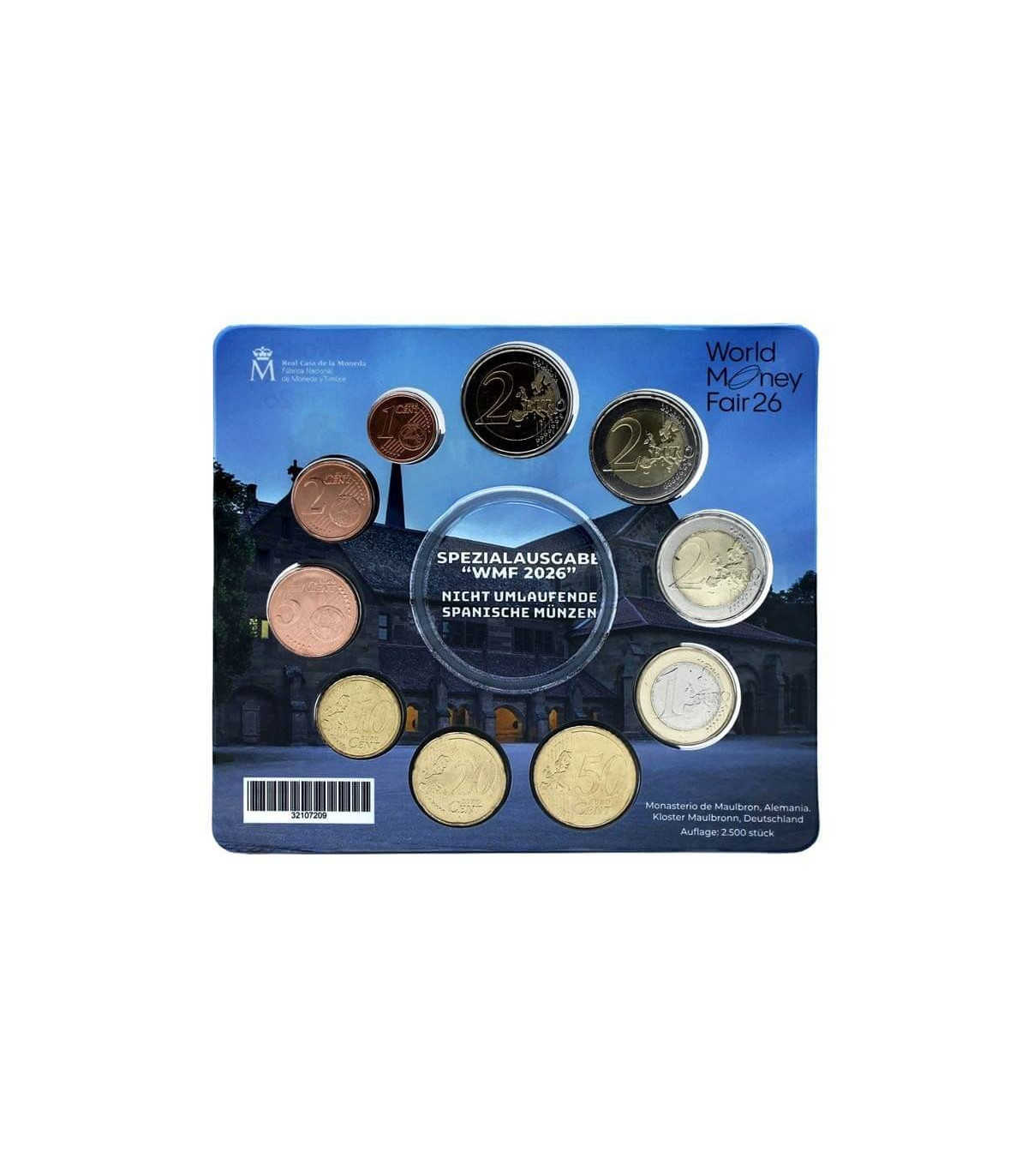 Universal Brilliant 2026 10-coin set including 8 circulating coins from 1 cent to 2 euros Spain of the year 2026 as well as the two commemorative Spain 2026.