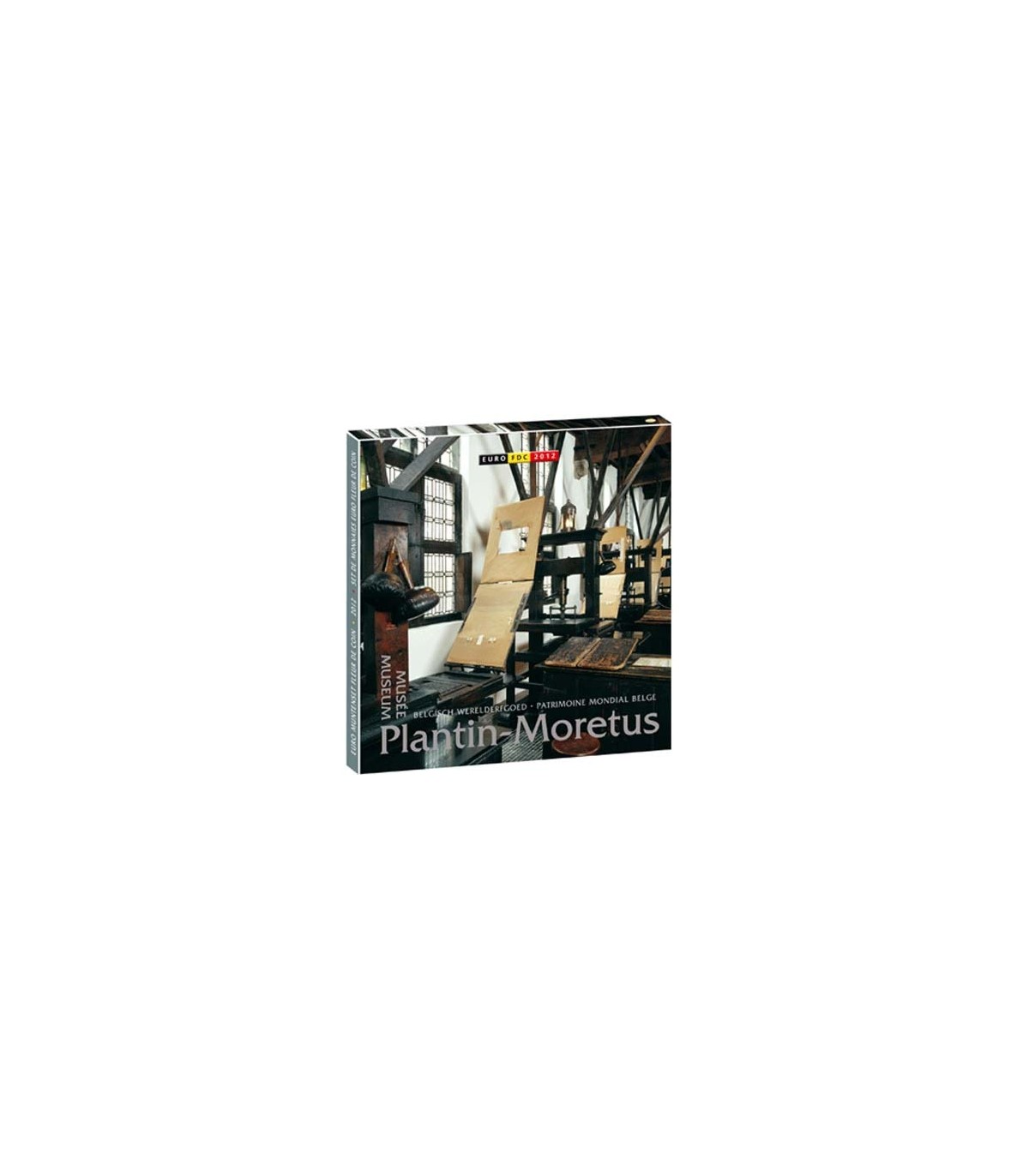 Boxed set of 8 circulating coins from 1 cent to 2 euros from the year 2012 and a colored medal on the theme of "the Plantin Moretus Museum".