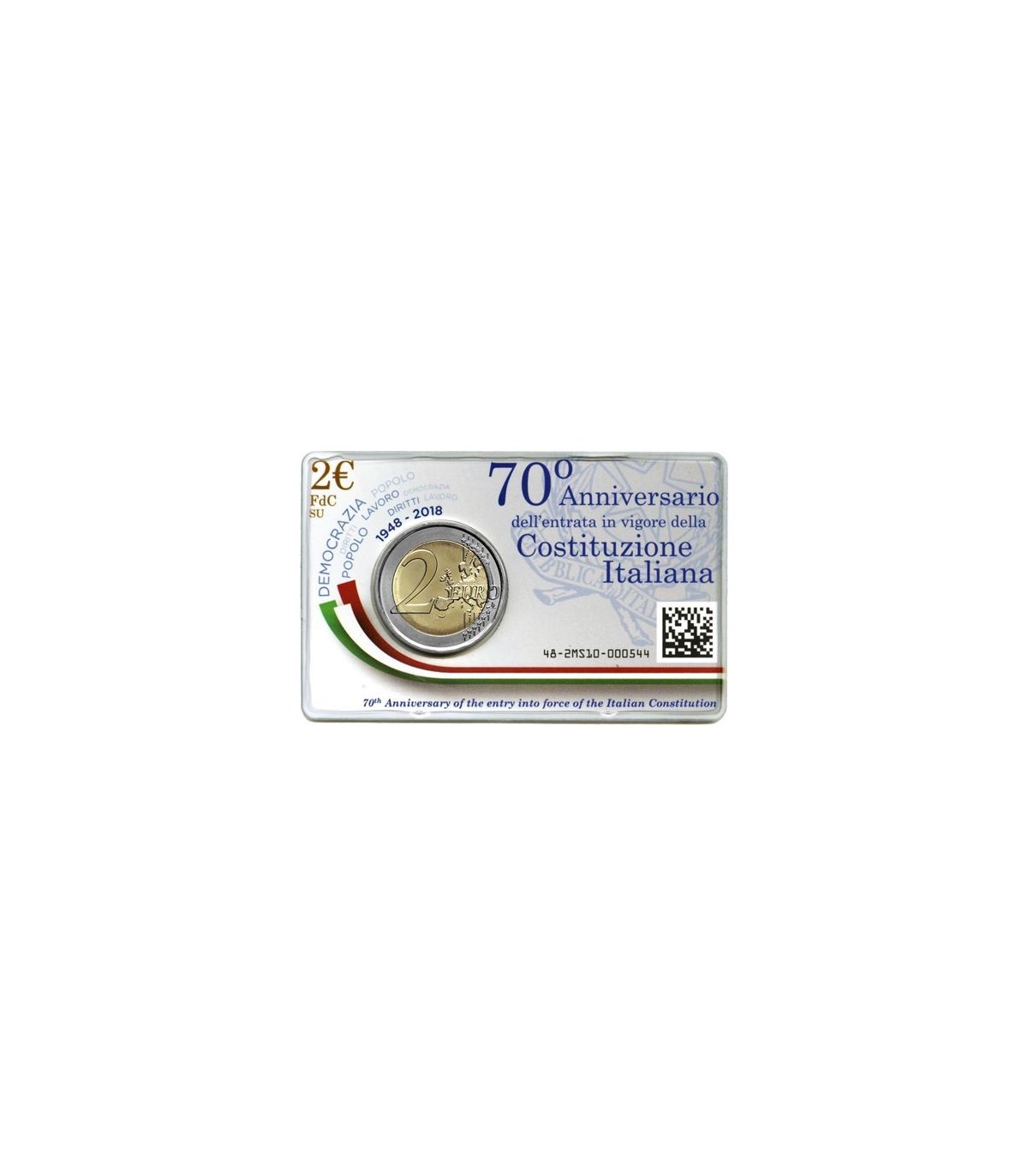 Tarjeta oficial en calidad Brillante Universal (BU) conmemorativa del 70 aniversario de la Constitución italiana.