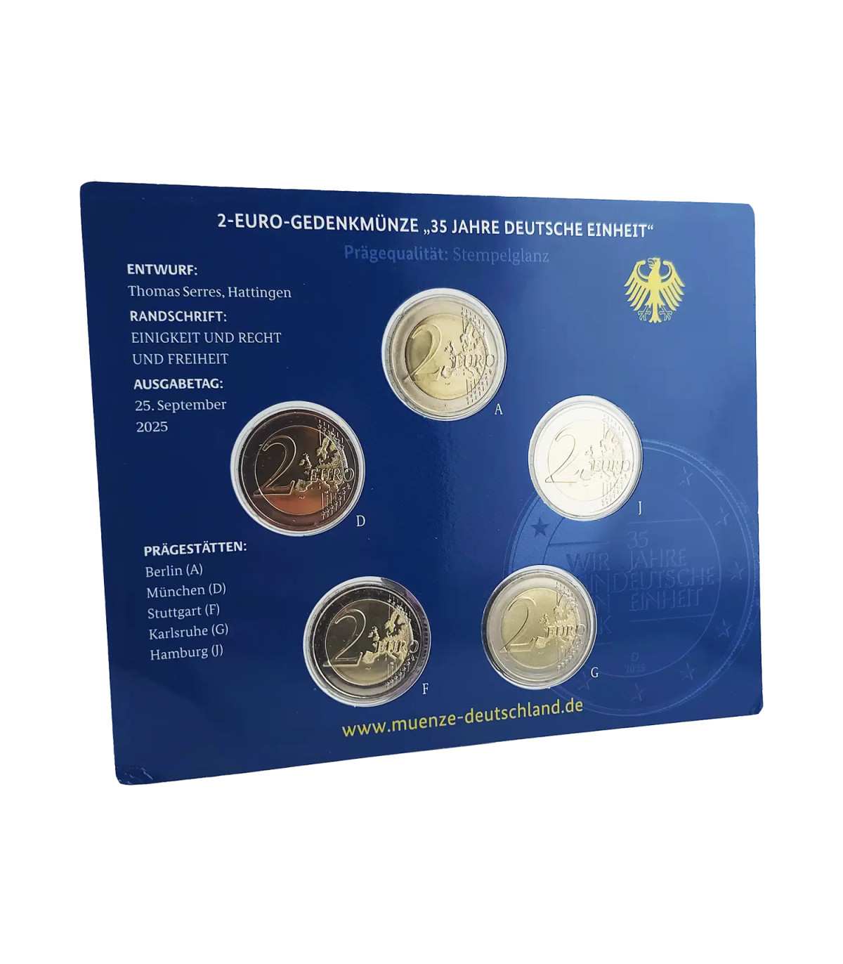 5 x 2 Euro conmemorativos Alemania 2025 - 35 años de la Reunificación alemana