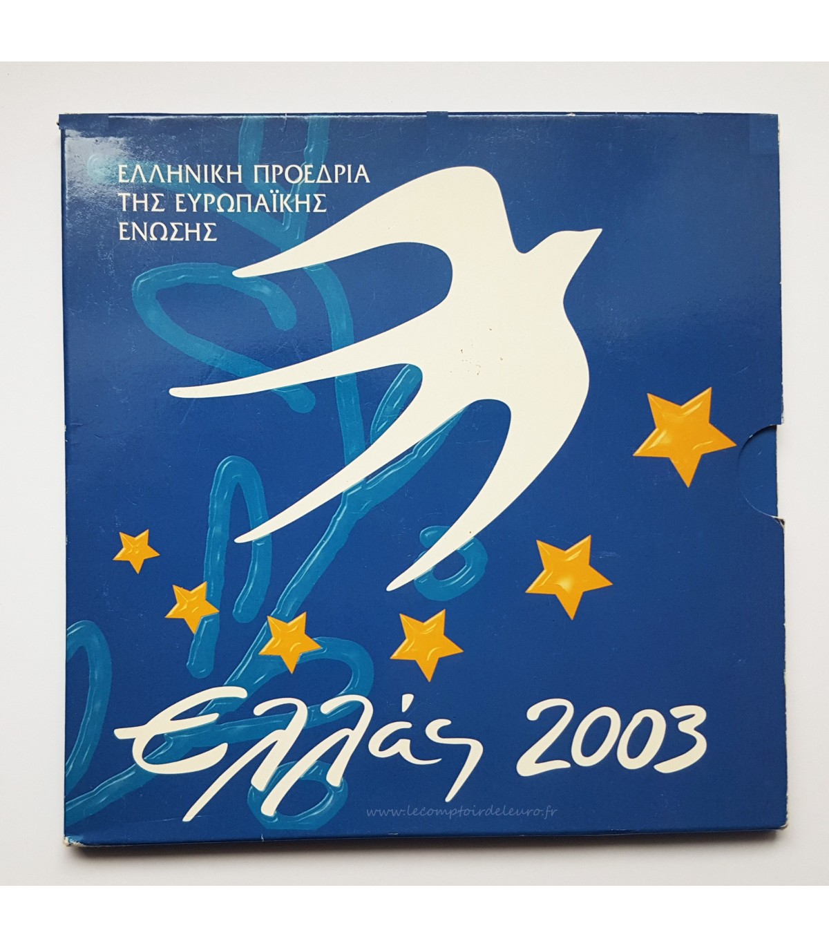 Serie de 8 monedas en una caja brillante BU universal, con las denominaciones de 1 céntimo a 2 euros Grecia 2003.