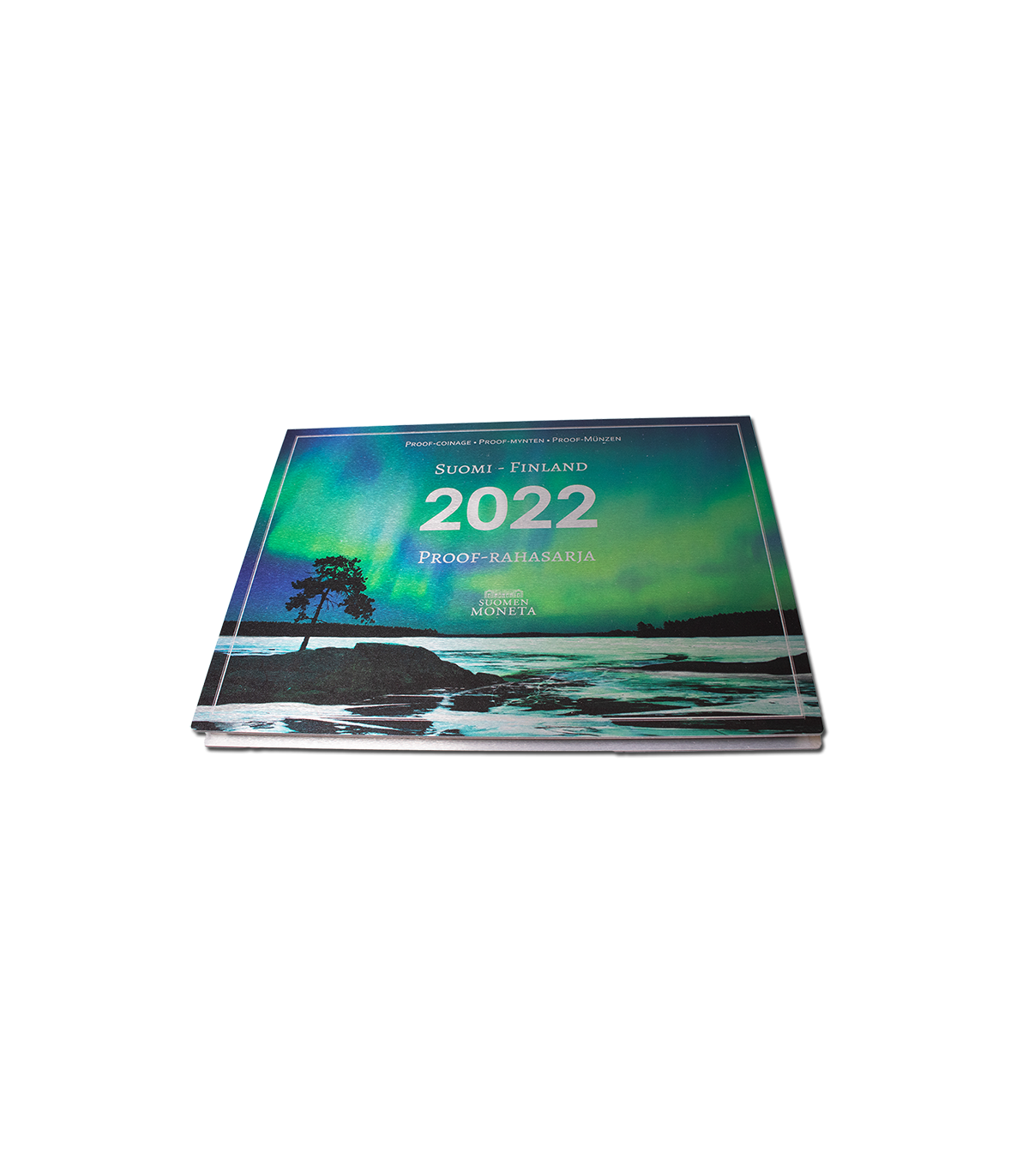 estuche Fine Proof BE Finlandia 2022 que contiene las monedas de 1 céntimo a 2 euros + las 3 monedas conmemorativas, es decir, un total de 11 monedas.