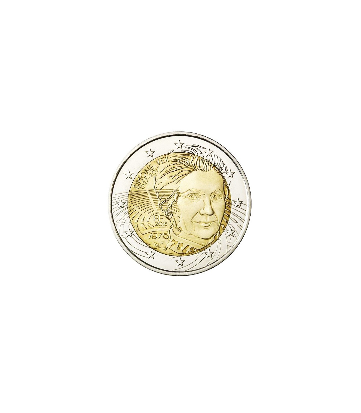 El diseño representa un retrato de Simone Veil, icono de la lucha por los derechos de la mujer. Simone Veil, de soltera Jacob, falleció en junio de 2017 a la edad de 89 años. Superviviente de los campos de Auschwitz, se convirtió en una de las protagonistas más importantes de la construcción europea. Fue la primera Presidenta electa del Parlamento Europeo de 1979 a 1982. Luchó por la despenalización del aborto, y en 1975 se aprobó la ley que lleva su nombre. Fue elegida miembro de la Academia Francesa en 2008.