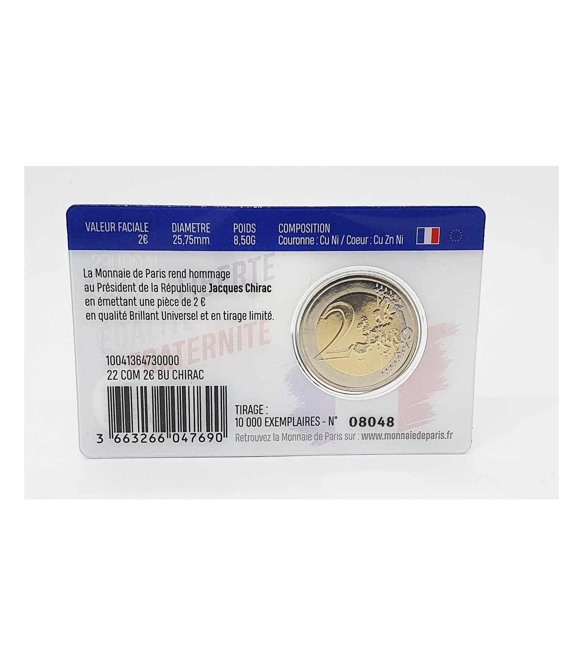 Tarjeta-moneda de 2 euros conmemorativa Francia 2022 - 90 años del nacimiento de Jacques Chirac