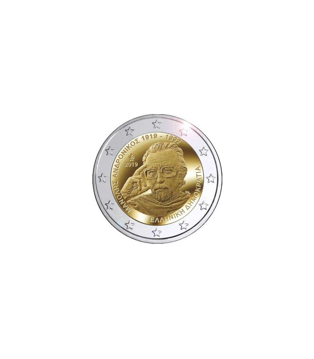 Moneda conmemorativa de 2 euros Grecia 2019 sobre el tema del centenario del nacimiento de Manolis Andronicos