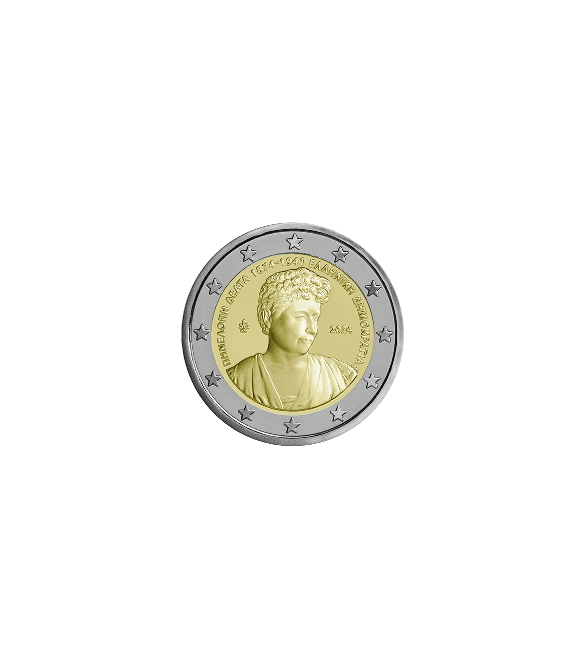 La moneda de 2 euros emitida por Grecia en 2024 conmemora el centenario del nacimiento de la escritora Penélope Delta, figura emblemática de la literatura griega moderna. Nacida en 1874, Penélope Delta es conocida por sus importantes contribuciones a la literatura infantil en Grecia, con obras que exploran la historia y las tradiciones griegas a través de cautivadoras historias para jóvenes lectores.