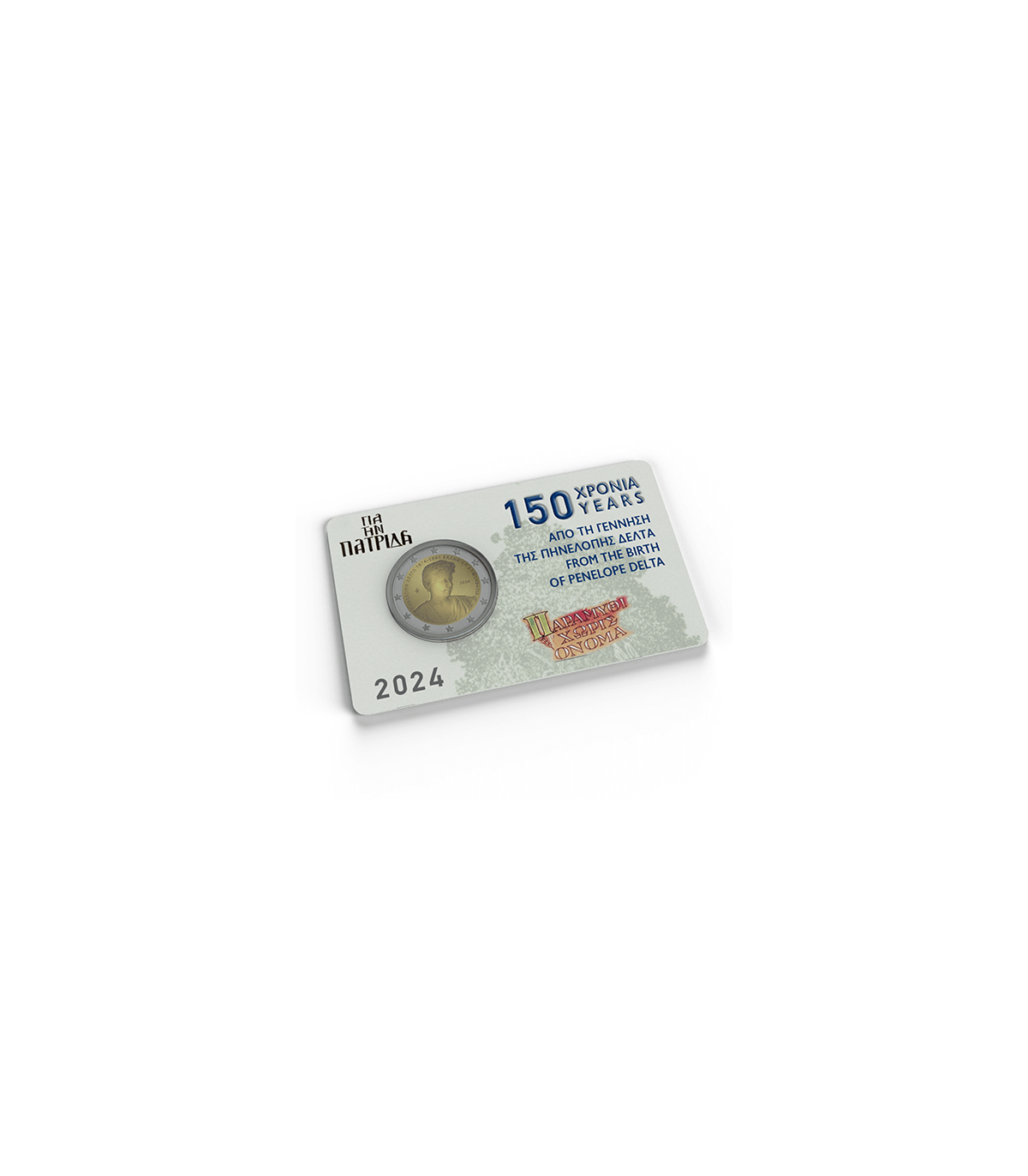 Tarjeta de 2 euros Grecia 2024 sobre el tema del centenario del nacimiento de Penélope Delta.