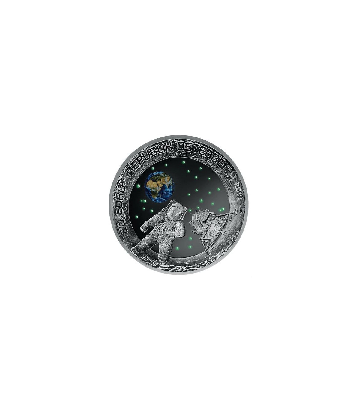 Moneda de plata de 20 euros Austria 2019 sobre el tema del 50 aniversario del 1er alunizaje.