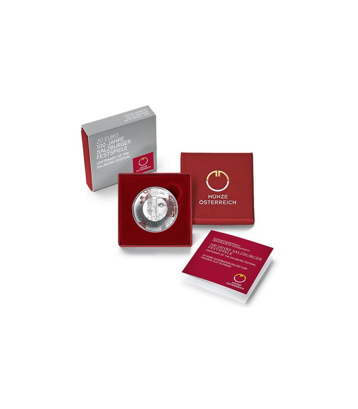 Moneda de plata de 20 euros Austria 2020 sobre el tema del centenario del Festival de Salzburgo