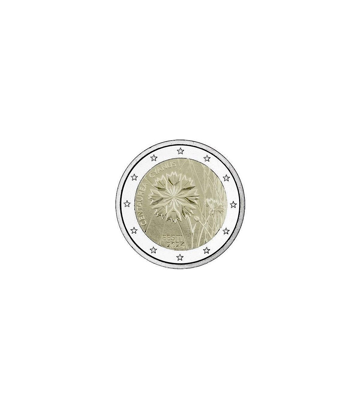 Esta moneda de dos euros está dedicada a la flor nacional de Estonia, el aciano (Centaurea cyanus). Esta emisión forma parte de una serie de monedas que representan símbolos nacionales estonios. Adoptado como flor nacional en 1968, el característico aciano azul aparece en esta moneda conmemorativa.