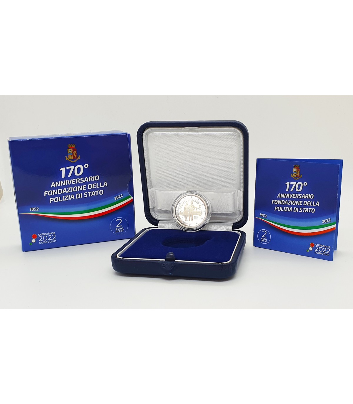 Primera moneda de 2 euros Italia 2022 - 170 años de la Policía Italiana en calidad de ceca
