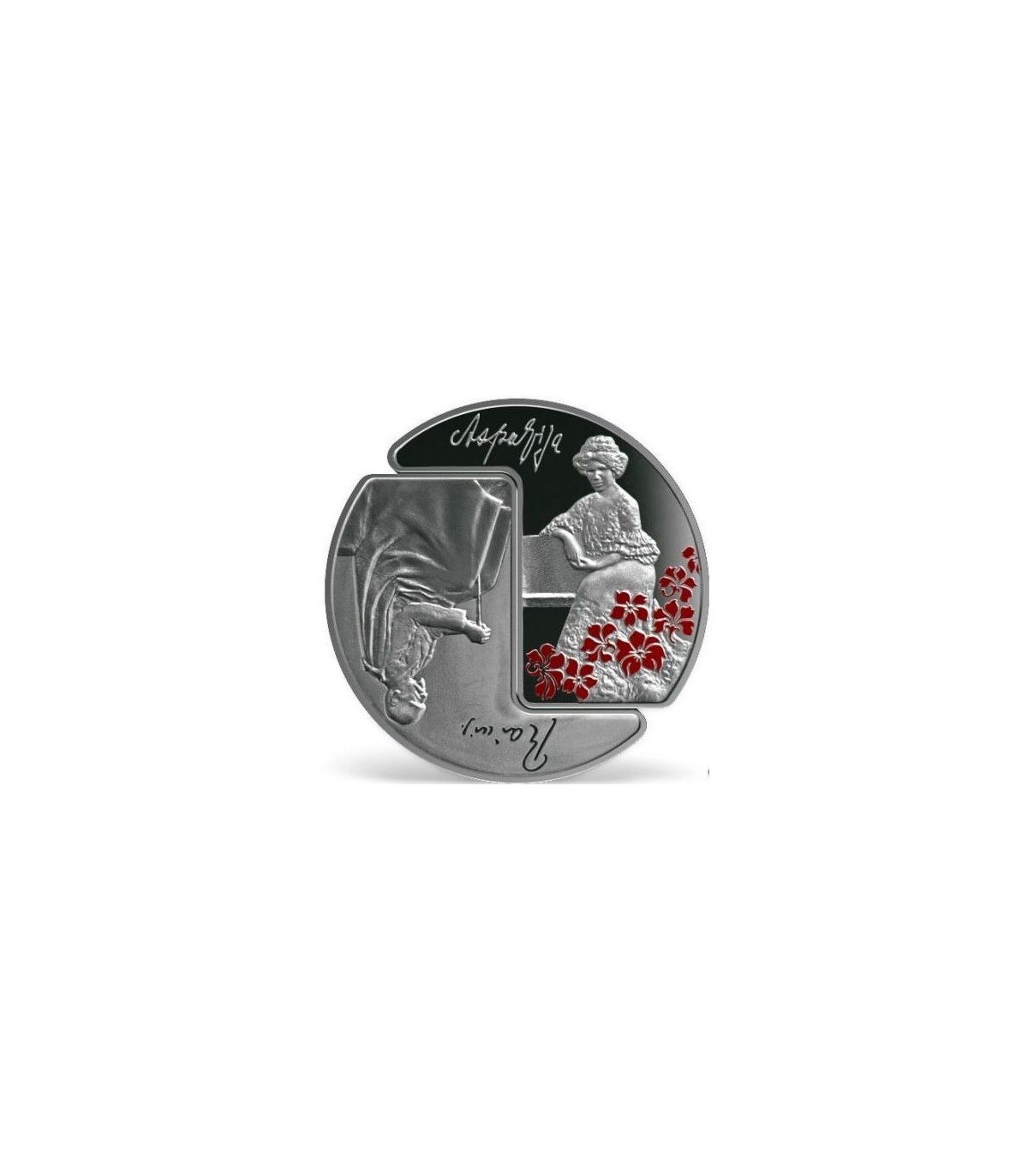 Moneda conmemorativa letona de 5 euros en plata en calidadBelle Epreuve sobre el tema del 150 aniversario de Rainis y Aspazija.
