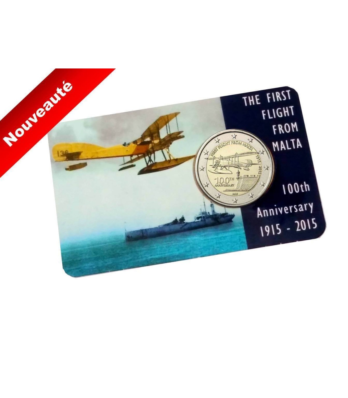 Tarjeta de 2 euros Malta 2015 con motivo del centenario del primer vuelo de Malta en una edición limitada de 25.000 ejemplares.