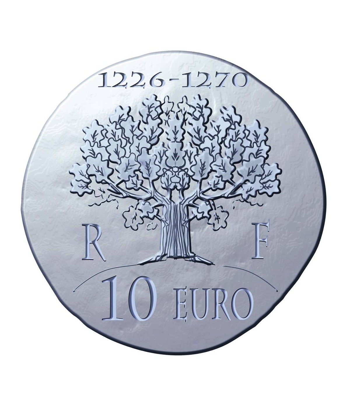 Reverso: el roble de la justicia en Vincennes. Fechas de su reinado, República Francesa. Valor facial 10 EURO.