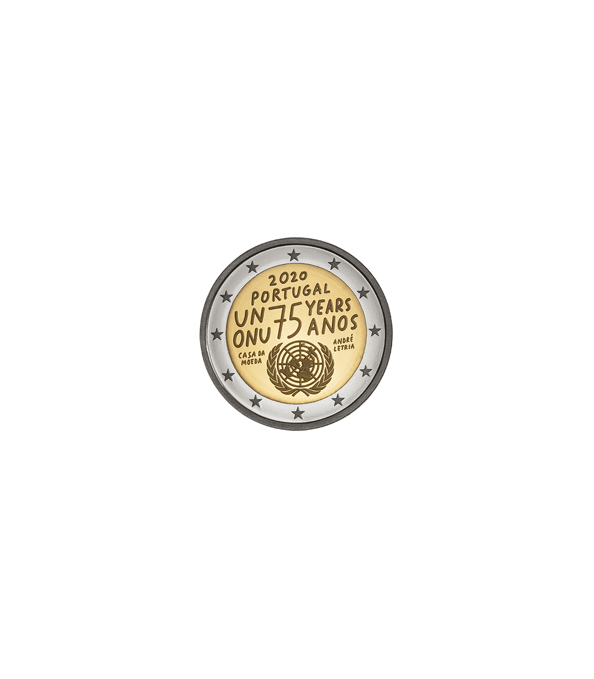 Moneda conmemorativa de 2 euros Portugal 2020 con motivo del 75 aniversario de la ONU
