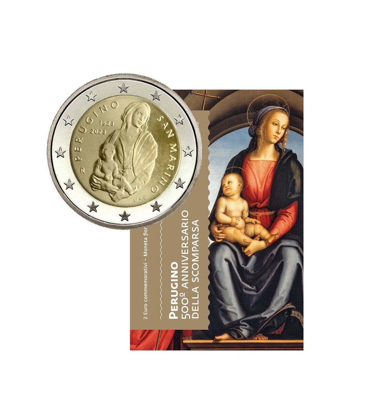 2 Euro San Marino 2023 sobre el tema del 500 aniversario de la muerte de Perugino