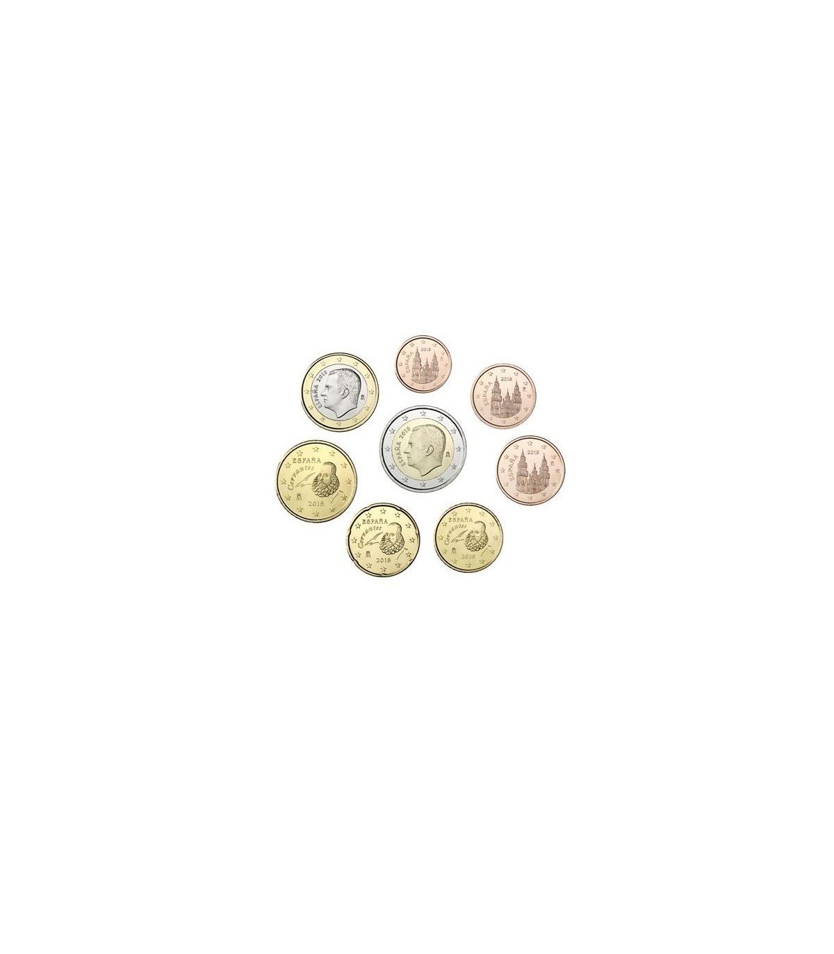 Nueva serie de 8 monedas (3,88 euros) para 2018 con la efigie del Rey Felipe VI, compuesta por monedas de 1 céntimo a 2 euros.