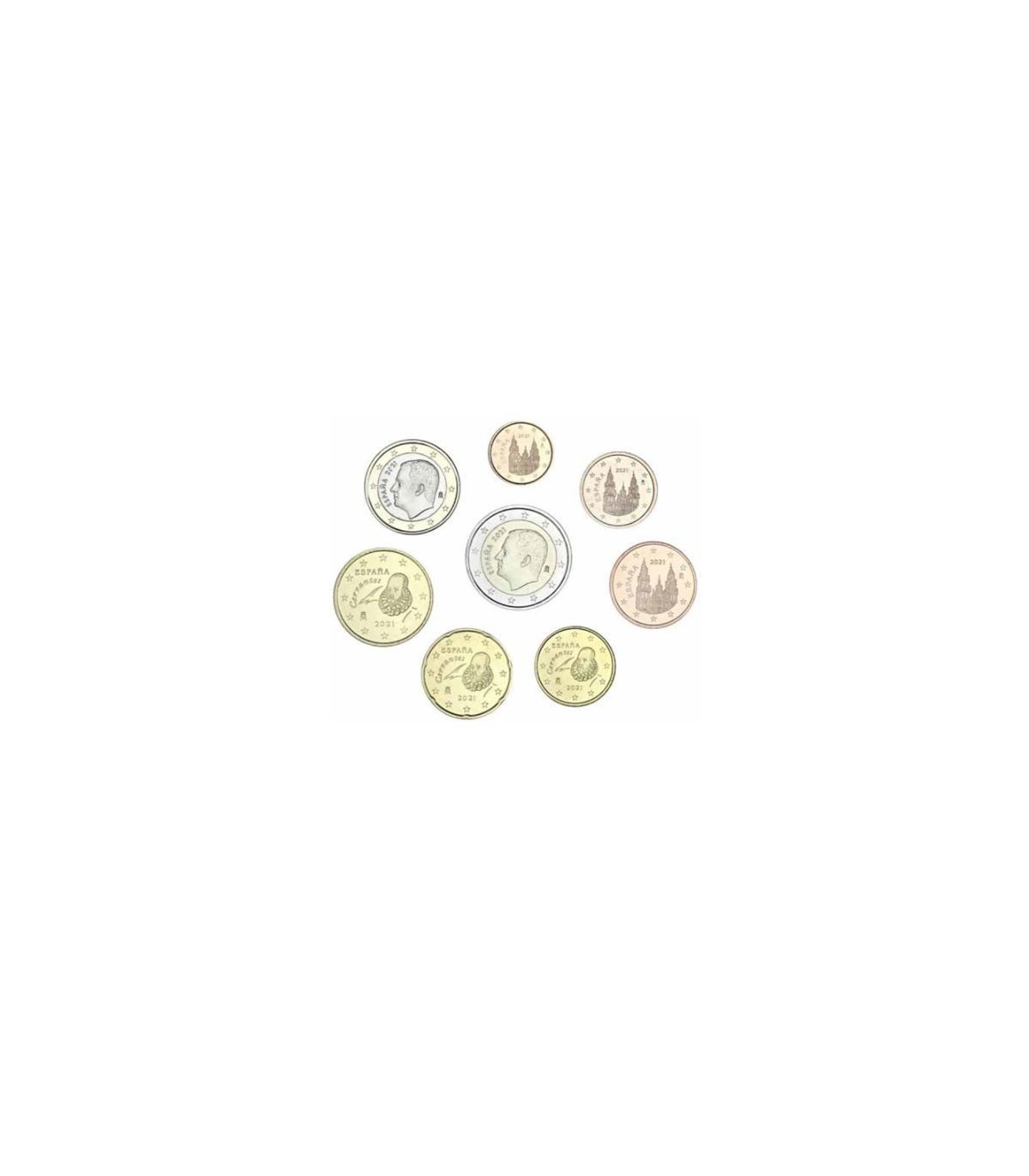 Serie de 8 monedas de 1 céntimo a 2 euros España 2021 incluyendo las monedas de 1 y 2 euros con la efigie del Rey Felipe VI