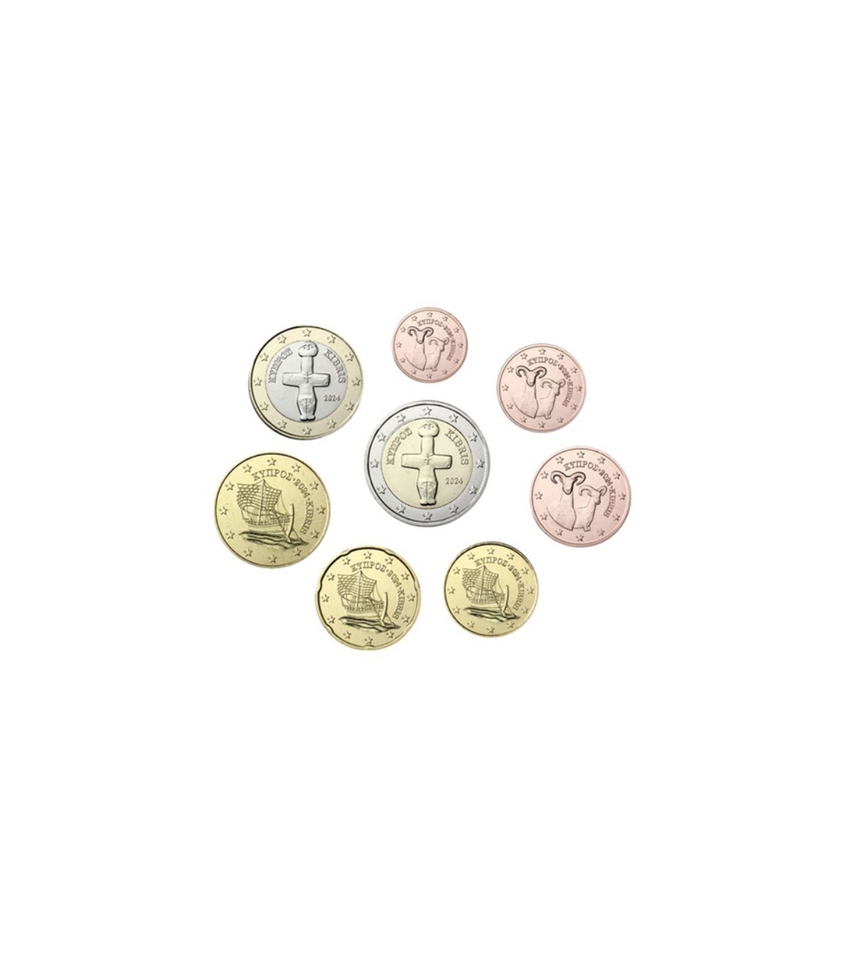 Serie chipriota compuesta por 8 monedas, de 1 céntimo a 2 euros, en el año 2024.