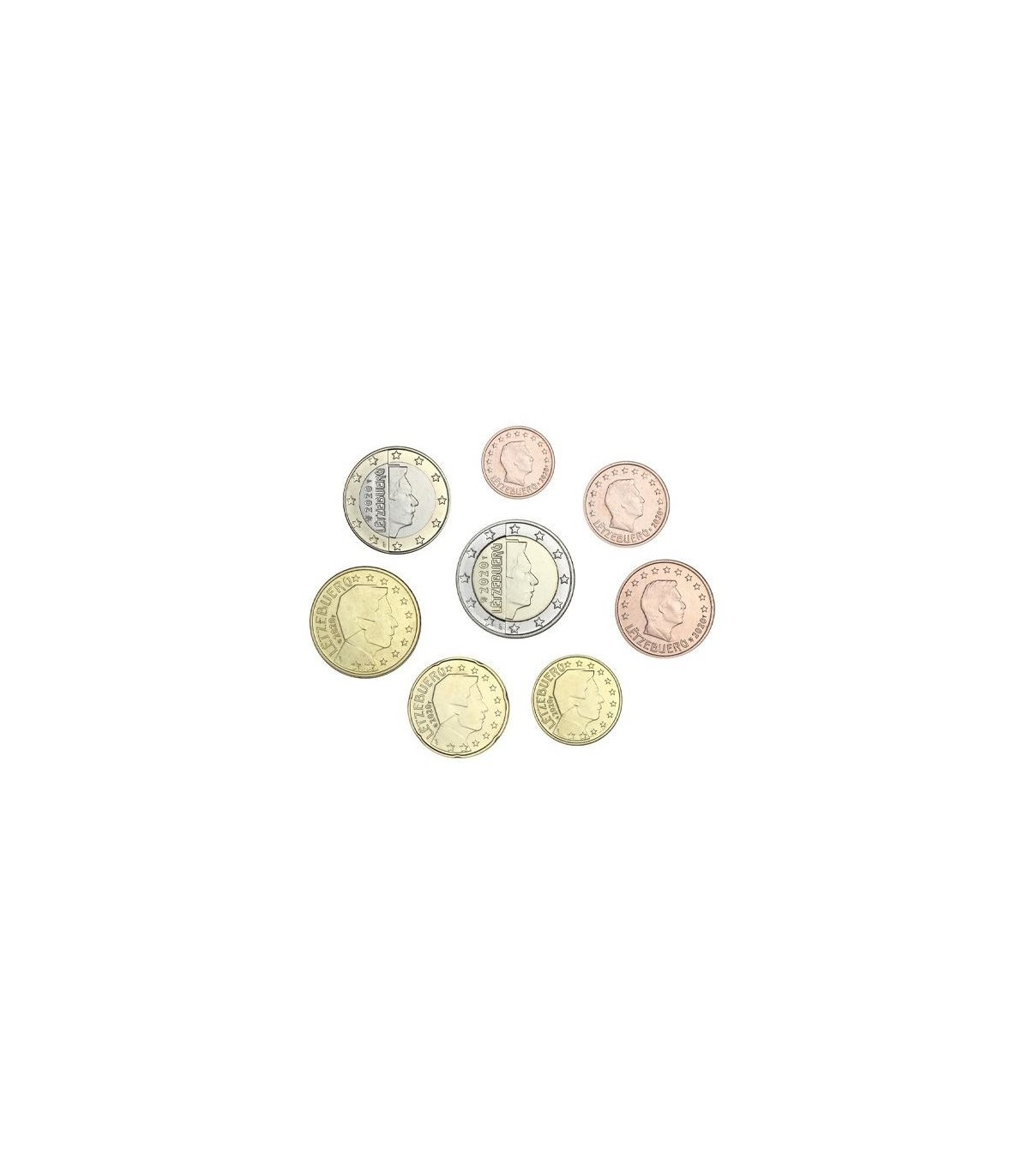 Série des 8 pièces Luxembourg 2020 réunissant les valeurs de 1 cent à 2 Euro courantes .