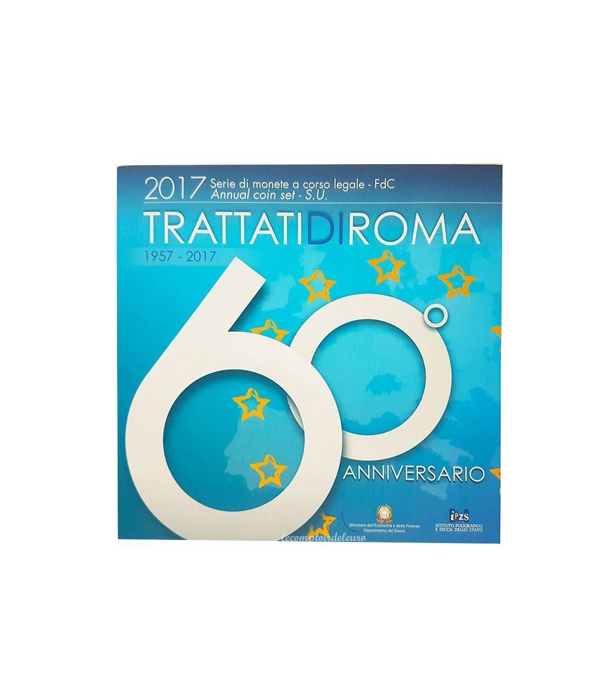 BU universal caja brillante con valores de 1 céntimo a 1 Euro Italia 2017 + 2 x 2€ conmemorativo + 5€ conmemorativo.