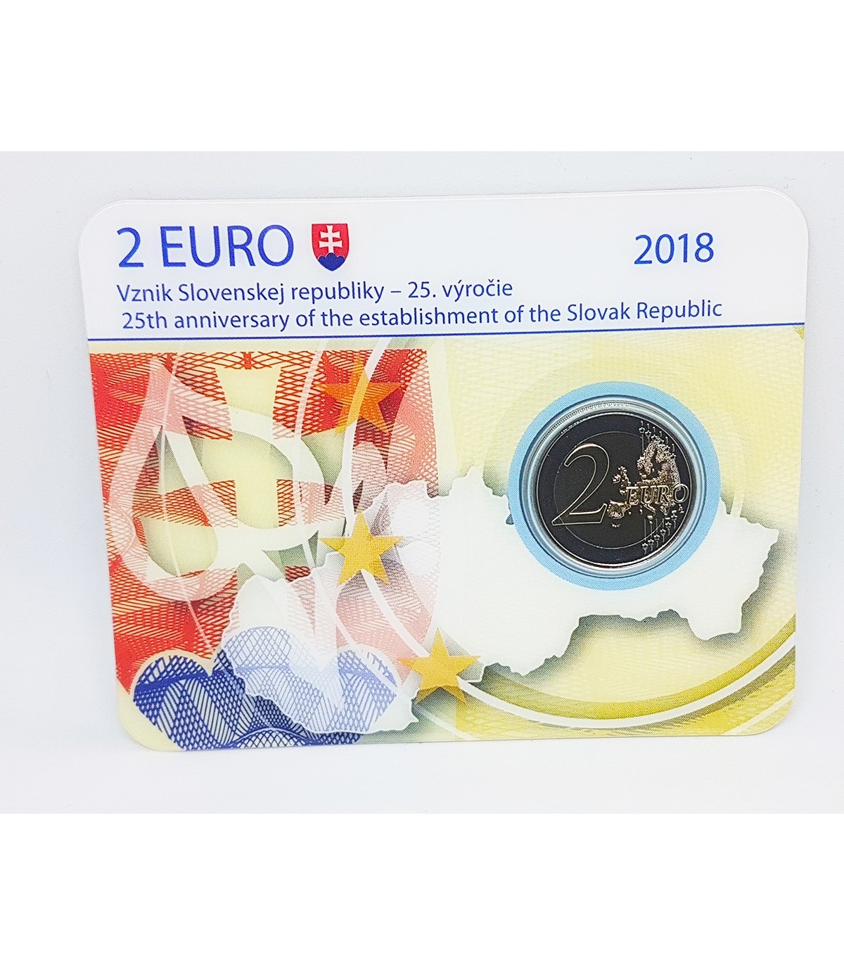 Coincard commémorative de 2 Euro Slovaquie 2018 sur le thème du 25 ème anniversaire de la création de la République Slovaque.