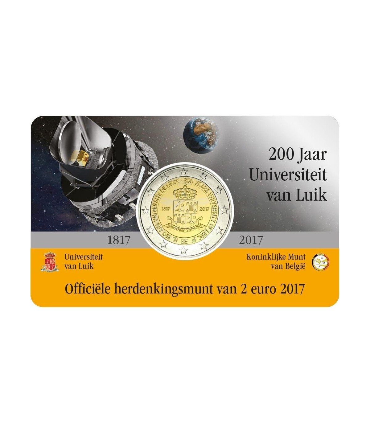 Coincard Flamande de 2 Euro Commémorative Belgique 2017 sur le thème des 200 ans de la création de l'université de Liège.