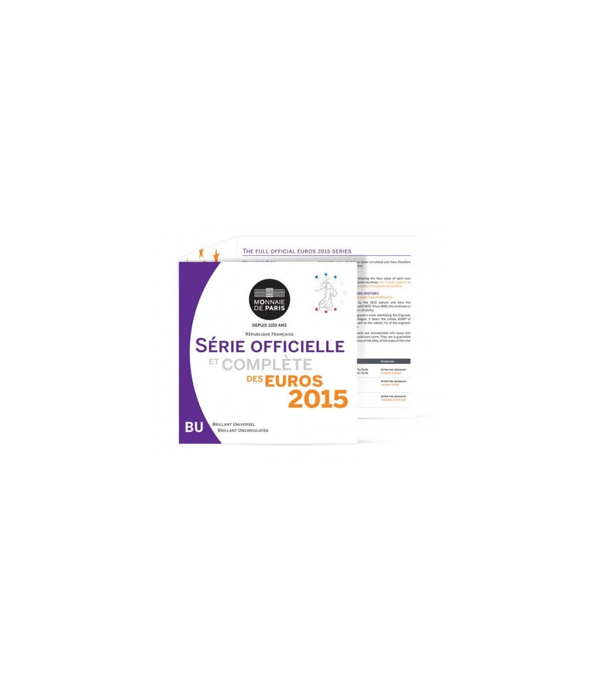 Coffret BU année 2015 comprenant une série de 8 pièces de 1 cent à 2 Euro France.
