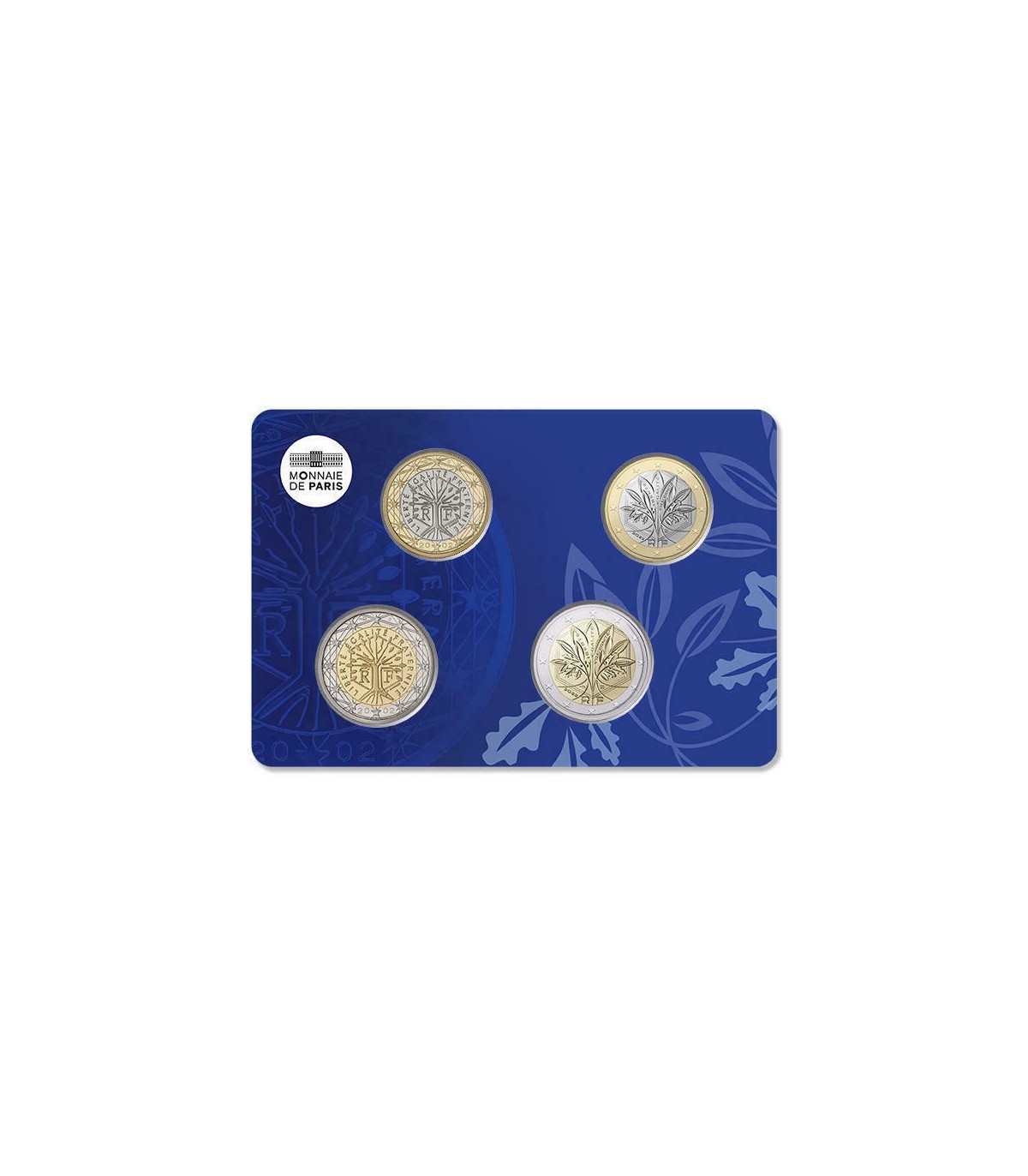 Coffret BU France 2022 réunissant 4 pièces 1 Euro et 2 Euro 2021 / 1 Euro et 2 Euro 2022